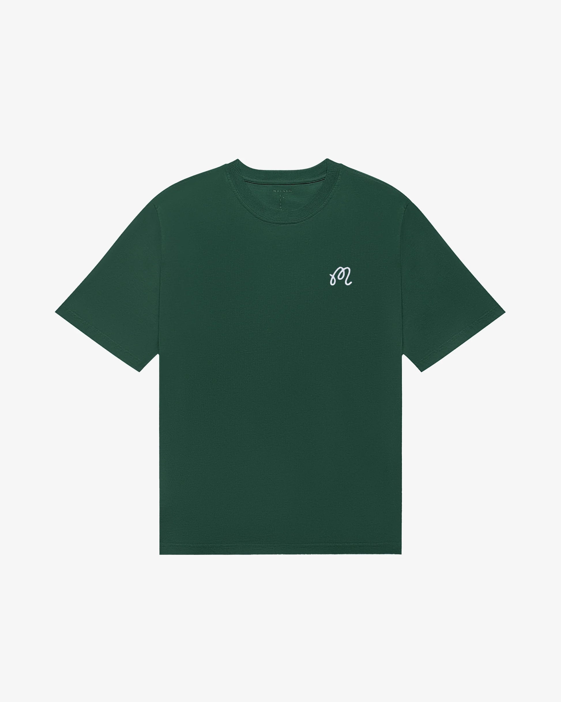 - Embroidered M script logo on left chest